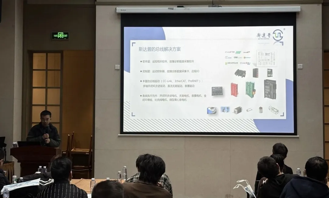 产品经理杨盛介绍了斯达普全球首款获得CC-Link IE TSN认证的步进驱动产品iD256-CKFA,支持TSN控制轴与IO双工作模式,可无缝集成于三菱MXR系列PLC系统,实现直线插补、圆弧插补等复杂运动控制。其方案通过误差补偿功能,可将设备定位精度从23.097μm优化至0.812μm,在半导体晶圆传输、光伏板式上料机等场景得到很好的实践。